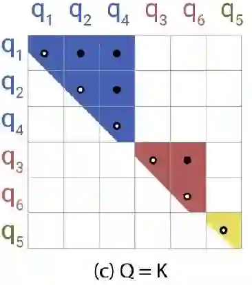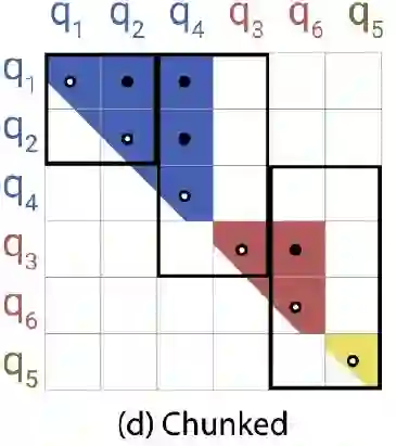 5. 对于每个query只attend自己以及自己之前的chunk,对于这些候选集中相同桶的key进行attend,复杂度 。