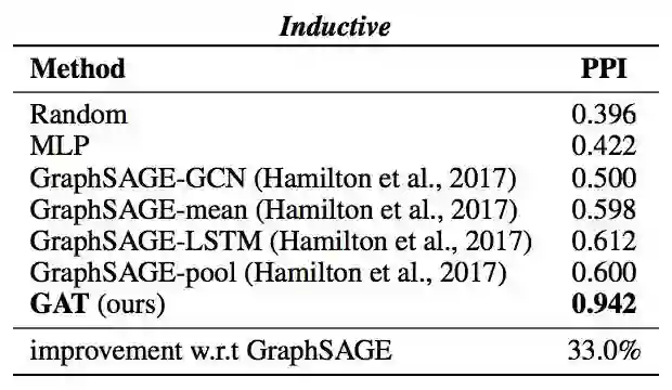 作者们提出的通过节点连接共享神经网络计算的方法和关系网络(Santoro et al., 2017)的形式类似,其中对象之间的关系(用卷积神经网络提取图像中的区域特征)通过应用一种共享机制将所有的对象两两配对然后聚合而成。他们在三种有挑战性的基准测试上验证了提出的方法:Cora 和 Citeseer 引用神经网络数据集和一个蛋白质与蛋白质相互作用的数据集,新方法在这些测试中均获得了当前最佳的结果,展现了基于注意的模型处理任意结构图的潜力。