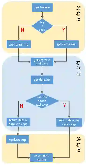 我们通过版本号来实现了这一目的。我们为缓存中的每一份数据都维持了一份版本号,存储层中相应的也有一份。只有当缓存中的版本号与存储层的版本号达到一致时,才会认为缓存中的数据是有效的。所以,客户端每次对内存层的读请求,都会由缓存层相应的产生一次读请求发到存储层。在一次 RPC 请求中完成有效性的识别以及过期数据的更新。