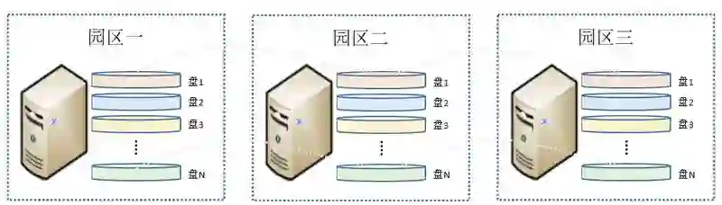 为了防止多节点同时失效,我们将数据的多副本分布在不同园区的机器上。园区是同一个城市不同数据中心的概念。如此,我们的结构足以应对单数据中心完全隔离级别的灾难。