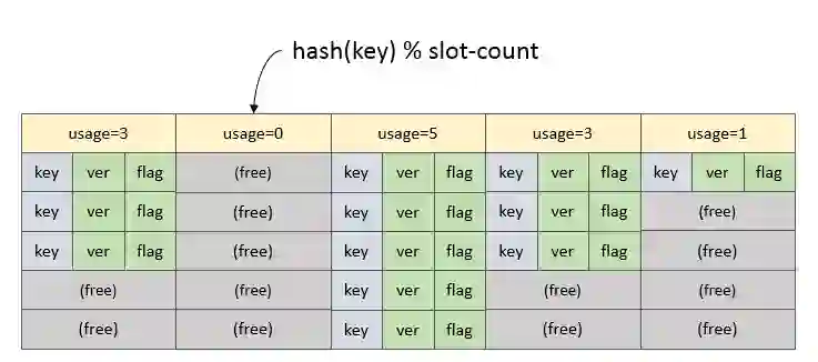 我们在内存层中设计了简单、轻量的支持变长数据的缓存结构。每台机器包含数十条 LRU 链,每条链都是一个共享内存形式的一维数组。所有的数据都追加写在数组的最新位置,到尾部后就从头开始循环。自然,这样的结构需要一个索引来记录数据的位置。这种方式固然浪费一些内存空间,但避免了内存的动态分配。