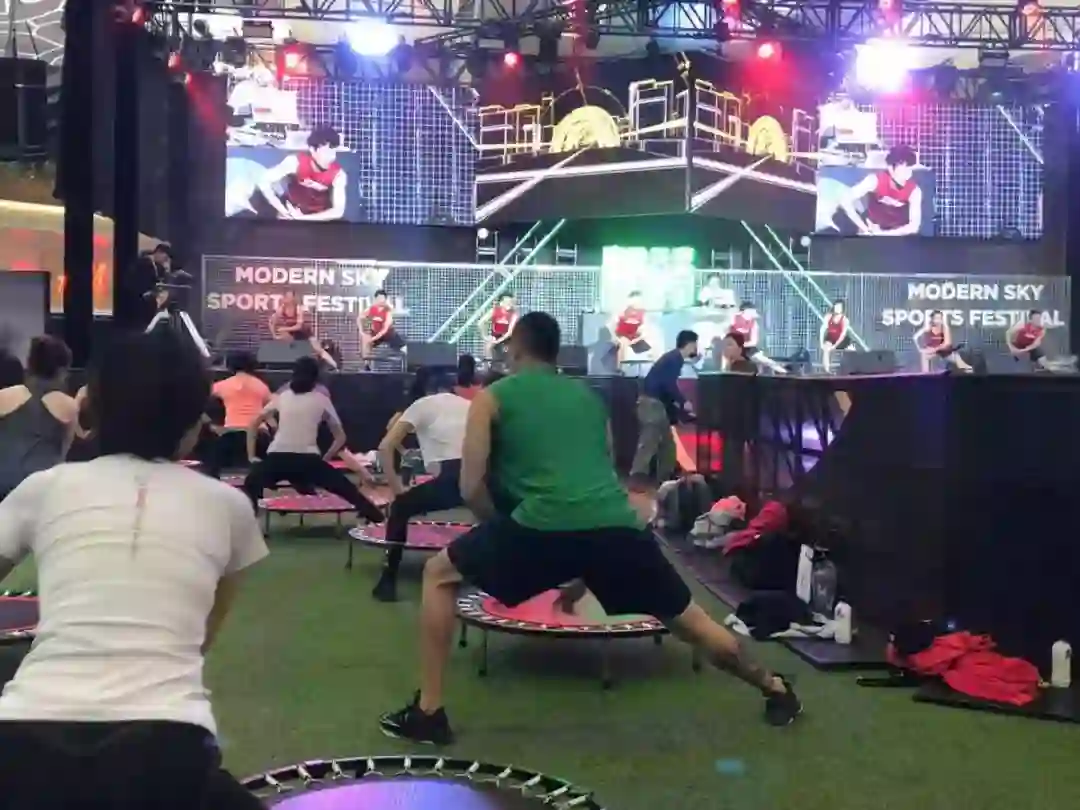 运动节场地分布在了大悦城一楼和四楼,在一楼五面围挡的中央广场内,进行“摩登健身秀”版块下的团课,运动节开幕的头两天,晚间的“摩登派对”还邀请来摩登旗下包括万妮达、蛋堡、Tizzy T在内的嘻哈音乐人为运动节登台造势。