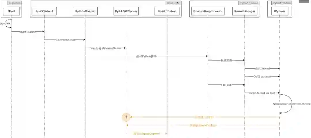 问题1从原理上看,是可以正常执行的。实际测试也是如此。对于问题2,答案似乎并不明显。结合“PySpark启动时序图”、“实际的IPython中启动Spark时序图”与“nbconvert执行时序图”: