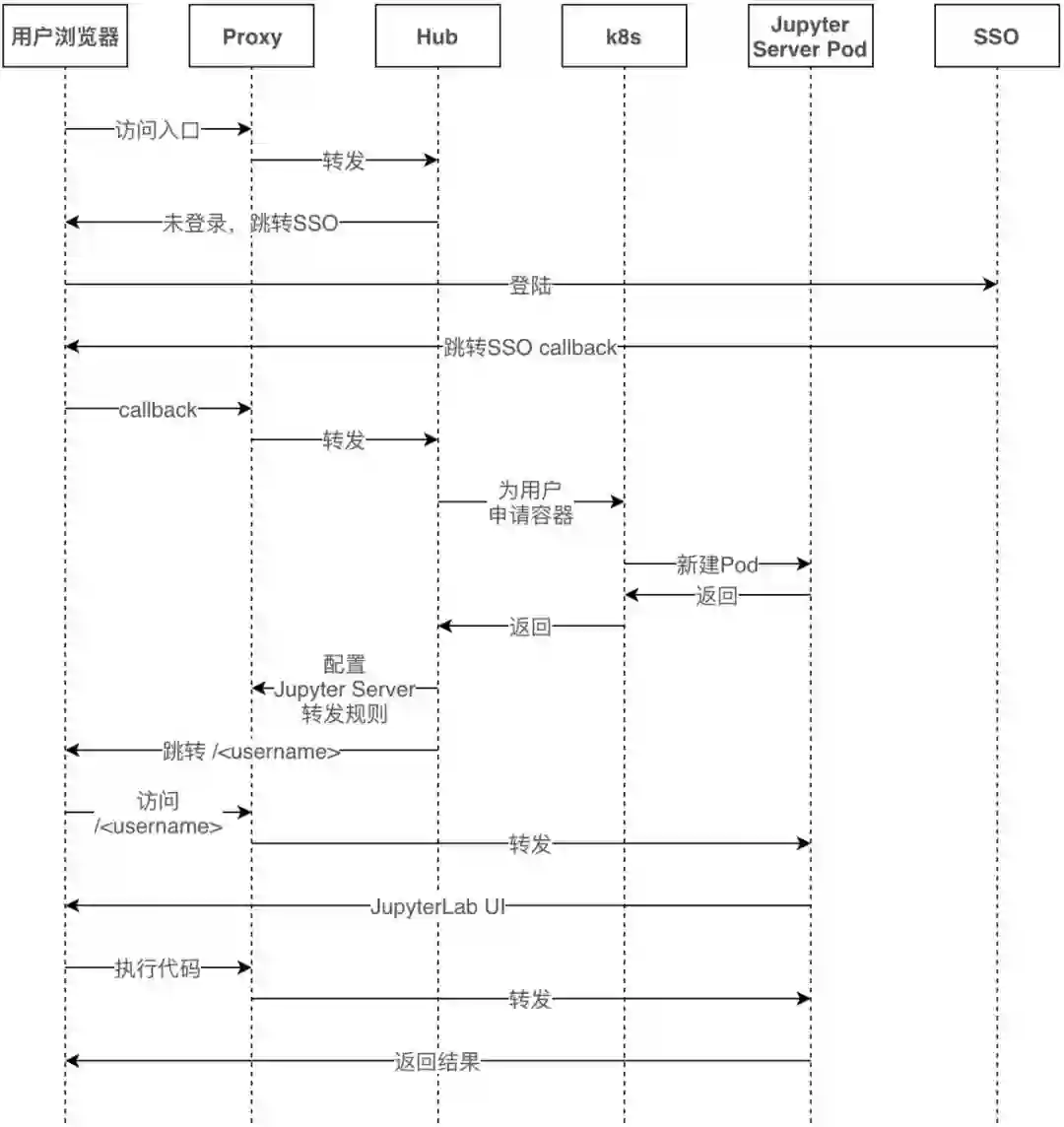 JupyterHub是一个多用户系统,登录模块可替换,通过实现新的Authenticator类并在配置文件中指定即可。通过这个扩展点,我们实现了使用内部SSO系统登录JupyterHub。Authenticator开发文档可参考: