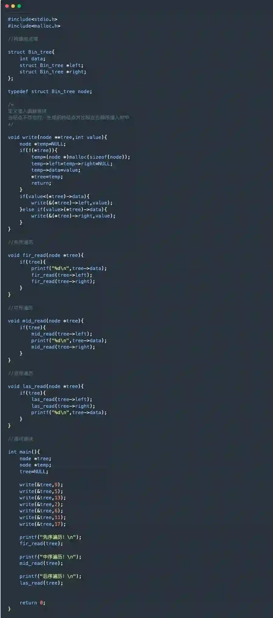 C 语言实现二叉树