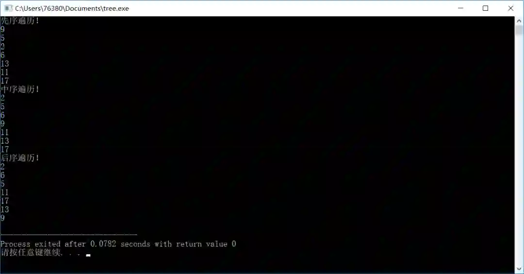 还有一种遍历法,称为层序遍历,有兴趣的读者可以尝试着写一下。