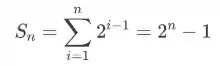 深度为 n 的二叉树,最多拥有 个结点。此性质可以通过数列求和得出: