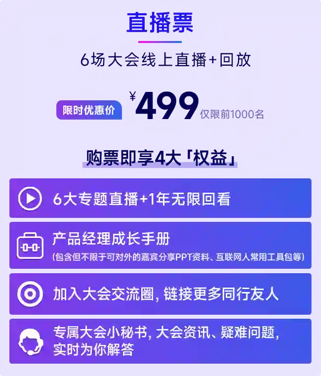 本次大会仅开放直播票,购买后即可收看完整的6个专场内容!