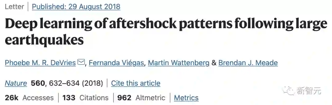在2018年,来自谷歌和哈佛大学的研究人员,曾在一篇发表在Nature的论文中,展示了如何用深度学习预测余震位置。