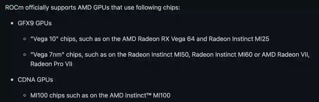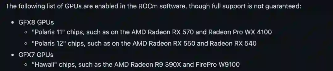 要问ROCm官方为什么不多适配一些显卡,原因可能有很多,测试经验不足,没有人力去测试太多显卡等等。