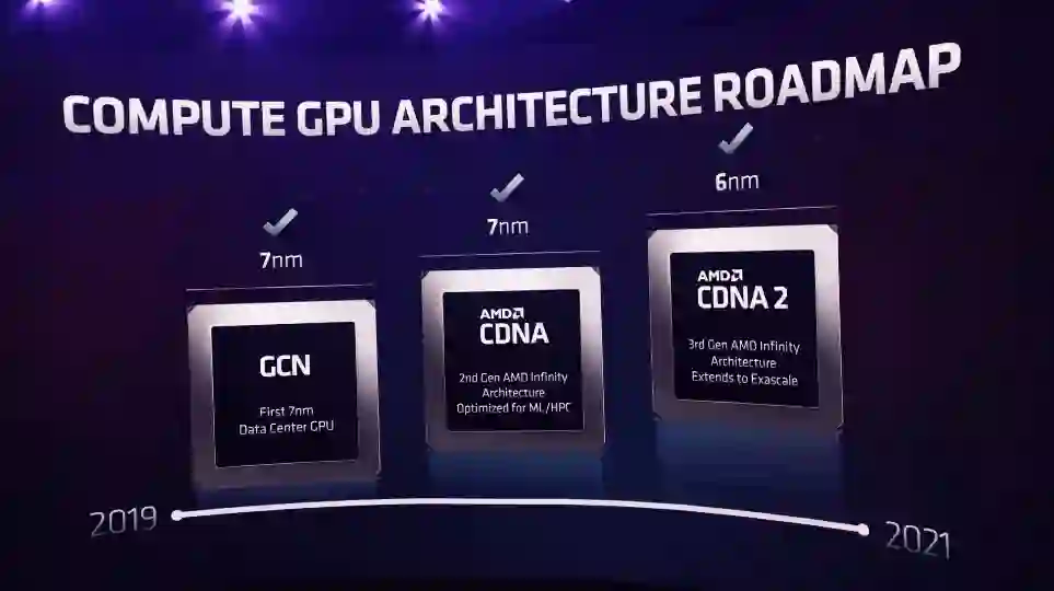 同是去年11月,AMD曾经发布过专为机器学习和高性能计算优化的GPU架构:CDNA,采用7nm制程和第二代Infinity架构。