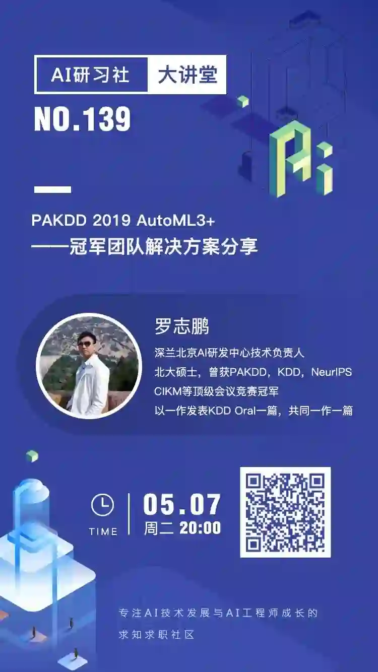 今晚20点大讲堂 | PAKDD 2019 AutoML3+冠军团队解决方案分享