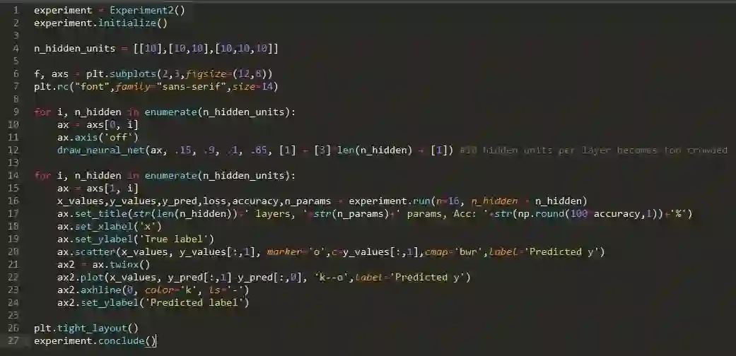 所有这些实验都是用 Python 编写的,使用了 tensorflow 和 sklearn 库,但鉴于篇幅,本文中大部分代码都被抽象出来,以便使实验更容易运行。请参阅 Github repo 的完整代码 (https://github.com/abidlabs/AtomsOfDeepLearning/ )。