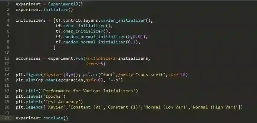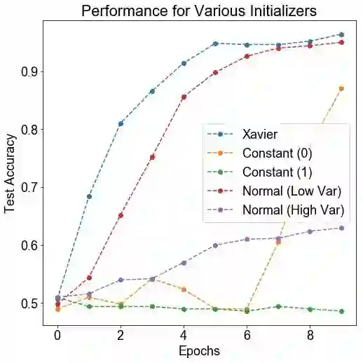 假设: 我们期望 Xavier 损失具有最好的性能(它是 tensorflow 中使用的默认值),而其他方法性能不佳(尤其是不断的初始化)。