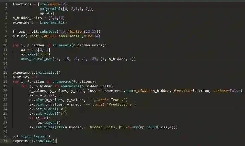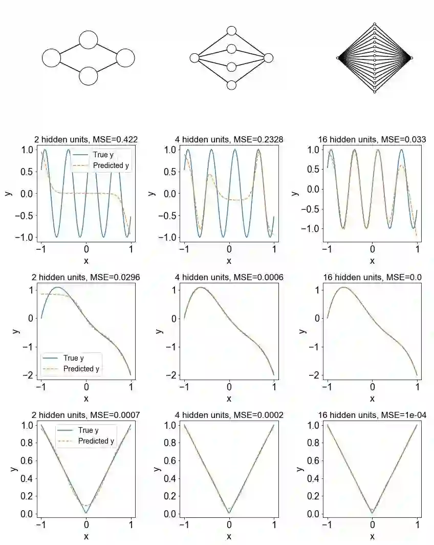 通用逼近性定理指出,一个具有单个隐藏层和标准激活函数的简单前馈神经网络(即多层感知器),如果隐藏层具有足够数量的单位,它就可以近似任何连续函数。让我们在实践中看一下,看看需要多少单位来近似一些特定函数。