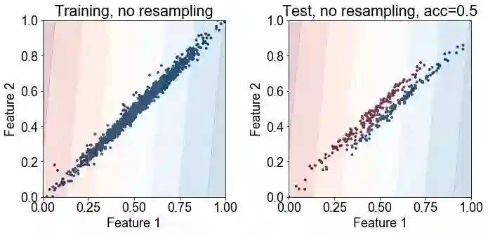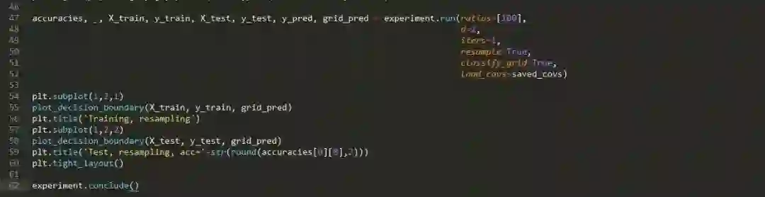 讨论: 重采样法对提高分类正确率有显著的影响,这可能有点让人惊讶了,因为它并没有将分类器展示少数类中的新训练的样本。但该图显示,重采样法足以“助推(nudge)”或将决策边界推向正确的方向。在重采样法不是有效的情况下,那么可能需要复合方式来合成新的训练样本,以提高正确率。