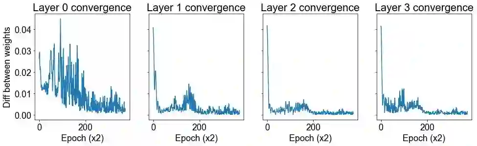 结论: 我们发现后一层的权重比前一层收敛得更快。