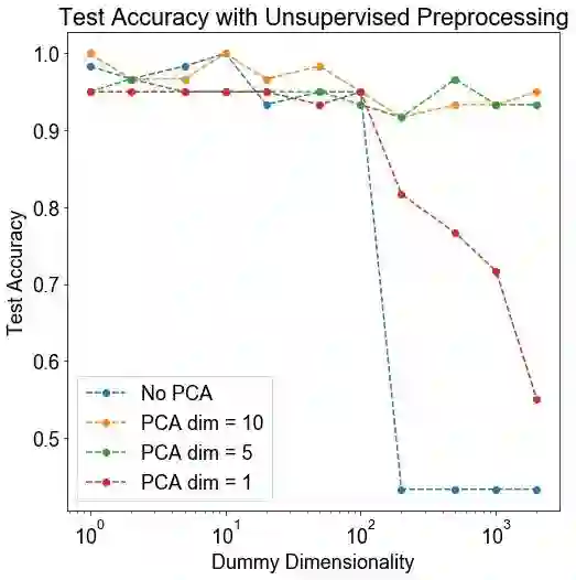 结论: 当维度非常大时,无监督的 PCA 步骤可以显著改善下游分类。