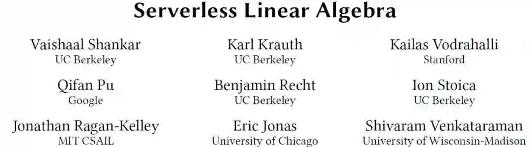 本文作者构建了 NumPyWren:一个基于无服务器编程模型的线性代数系统,以及 LAmbdaPACK:一个为高度并行线性代数算法的无服务器执行而设计的领域特定语言。相关工作发表在 SoCC’20 中。