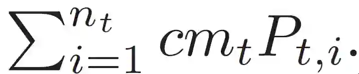 无服务器云根据函数执行时间和函数内存大小向用户收费。令 c 表示使用 1GB 内存执行一个函数一秒钟的单价。一个 epoch t 的总花费为: