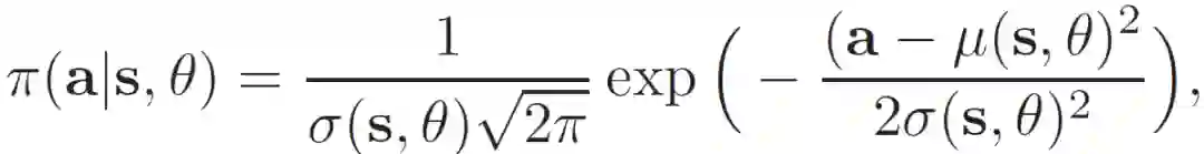 基于条件概率π(a_t | s_t-1, θ)确定动作 a_t。然后,在一个大的离散作用空间上学习概率质量函数的问题就转化为在一个二维连续空间中寻找参数 (μ(s,θ),σ(s,θ)) 的问题。