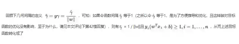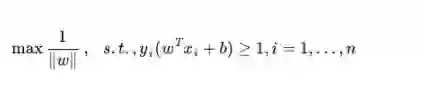 的最小值,所以上述目标函数等价于(w由分母变成分子,从而也有原来的max问题变为min问题,很明显,两者问题等价):