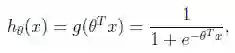 其中x是n维特征向量,函数g就是logistic函数。