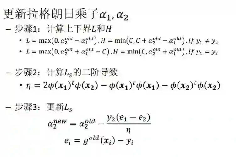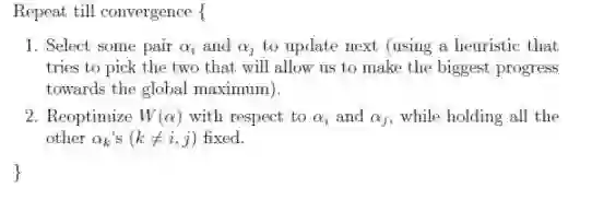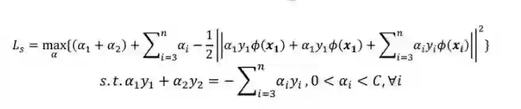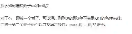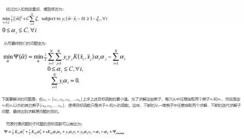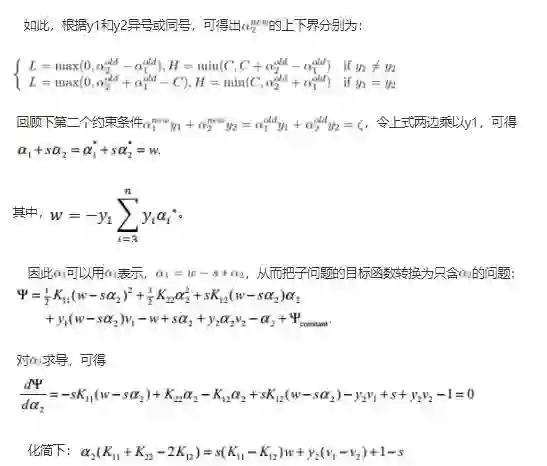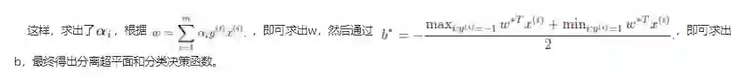 (3)在求得L(w, b, a) 关于 w 和 b 最小化,以及对 α 的极大之后,最后一步则可以利用SMO算法求解对偶问题中的拉格朗日乘子 α