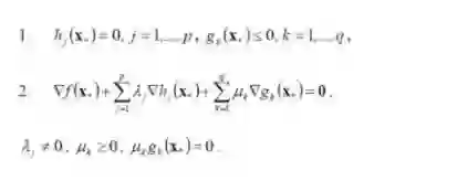 而KKT条件就是指上面最优化数学模型的标准形式中的最小点 x* 必须满足下面的条件:
