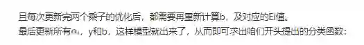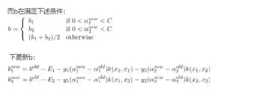 最后,每次更新完两个乘子的优化后,都需要再重新计算b,及对应的Ei值。