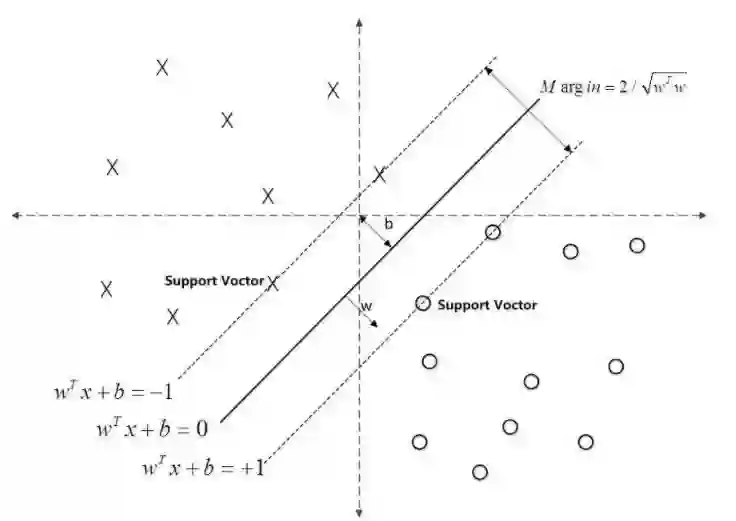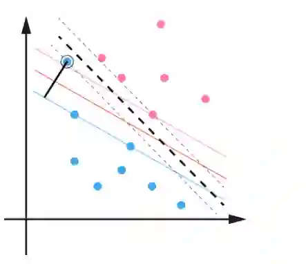 ,而虚线间隔边界上的点则是支持向量。由于这些支持向量刚好在虚线间隔边界上,所以它们满足