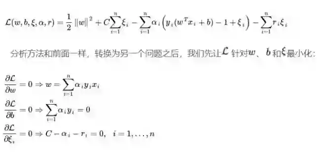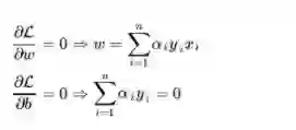 经过论证,我们这里的问题是满足 KKT 条件的(首先已经满足Slater条件,再者f和gi也都是可微的,即L对w和b都可导),因此现在我们便转化为求解第二个问题。