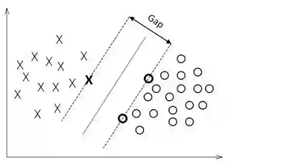 对一个数据点进行分类,当超平面离数据点的“间隔”越大,分类的确信度(confidence)也越大。所以,为了使得分类的确信度尽量高,需要让所选择的超平面能够最大化这个“间隔”值。这个间隔就是下图中的Gap的一半。