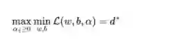 这里p*用表示这个问题的最优值,且和最初的问题是等价的。如果直接求解,那么一上来便得面对w和b两个参数,而αi又是不等式约束,这个求解过程不好做。不妨把最小和最大的位置交换一下,变成: