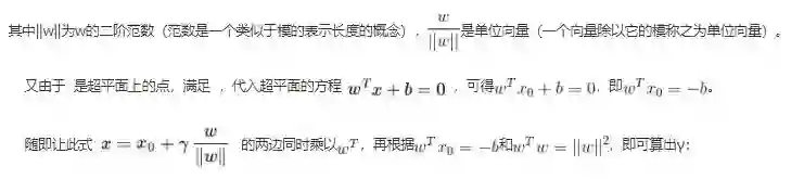 为了得到 γ 的绝对值,令 γ 乘上对应的类别 y,即可得出几何间隔(用