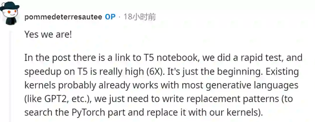 项目作者表示,未来还将在预热速度、训练支持、多 GPU 支持、量化和硬件支持等多方面改进推理引擎 Kernl。