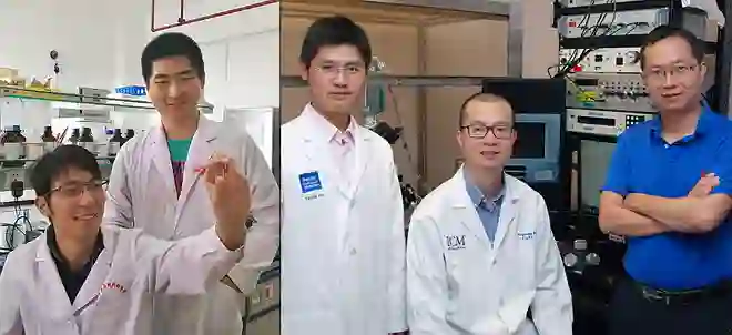 从左往右依次为:华南农业大学的Canjun Zhu、Gang Shu教授 ,贝勒医学院的Yanlin He博士、Pingwen Xu博士和Yong Xu教授(图片来源:华南农业大学、贝勒医学院)