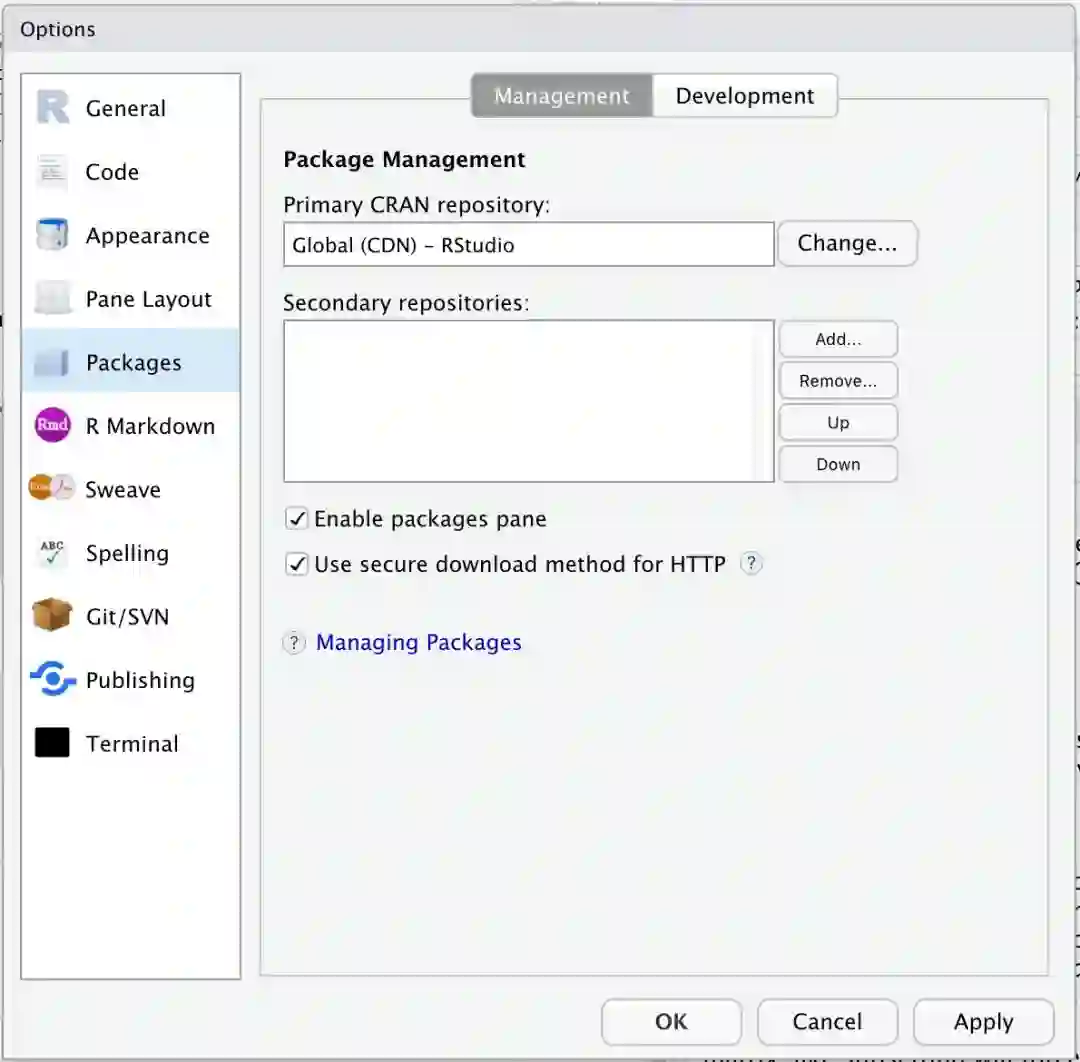 RStudio1.2 可以设置 primary 和 secondary repositories