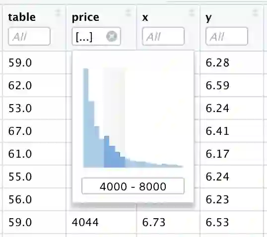 Rstudio 1.2 显示变量的 histogram 使得在筛选数值型数据时更加直观。