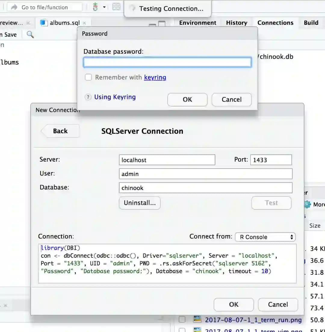 RStudio 1.2 支持 keyring package,不再需要在代码中写入密码。使得数据库安全性提高。