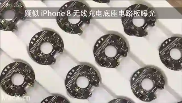 泄密达人在推特上分享了一张据称是iPhone 8无线充电底座的电路板谍照。照片中零部件整齐摆列在托盘中,线圈组件中间留有圆孔,据称是无线充电器中的组件。根据其电路板形状推测苹果的无线充电器有可能是圆形设计。此外,有消息称 iPhone 8的无线充电方式与Apple Watch感应式无线充电类似。
