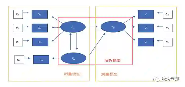 定义:PLS-SEM模型:基于偏最小二乘法的方差分析方法,它是一种将主成分分析与多元回归结合起来的迭代估计,也是一种因果建模的方法。