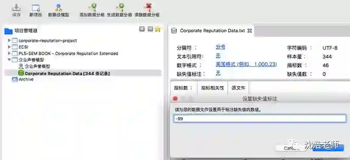 创建新项目, 并导入数据。由于数据有缺失值,且在源文件中标注为-99,故进行缺失值标注更改。