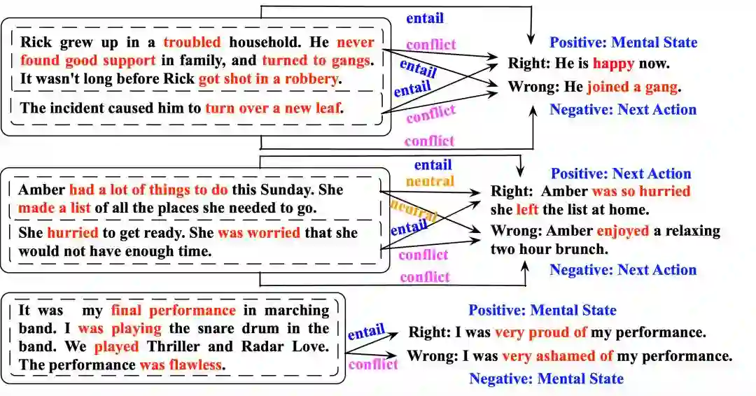 图2. 故事结尾预测与自然语言推理、情感分类、后续动作预测任务的关系