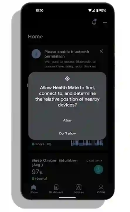 对我们而言,附近设备权限是 Android 12 中最重要的变更之一。 Withings HealthMate