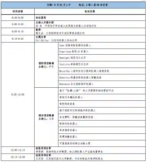 2019年正值世界机器人大会五周年,为链接国内外顶尖高校与科研院所、一线投融资机构、相关领域知名企业,打通“产学研用金”系列模式,发掘、扶持优秀的创新企业及项目,形成机器人产融结合与科技创新互促发展的新局面,依托世界机器人大会国际化、专业化、产业化的平台优势,由中国电子学会主办、中关村智友天使学院承办的“投创之星”国际优秀项目路演暨中以机器人产业合作论坛将于8月22日隆重举行。届时将会有来自中国和以色列的共计16个硬科技项目参加论坛的路演展示环节,项目的创新应用场景囊括了社会服务、精准医疗、高端装备、公共安防、商业火箭等。