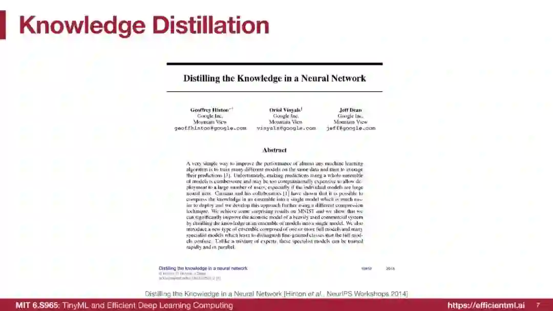 便捷下载,请关注专知公众号(点击上方蓝色专知关注) 后台回复“KD94” 就可以获取《 MIT韩松《知识蒸馏》课程,94页ppt》专知下载链接