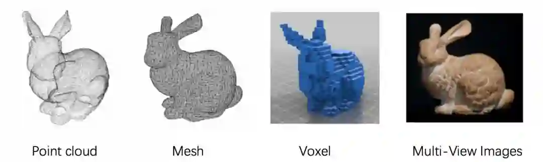Multi-View Images:多视角图片,是通过不同视角的虚拟摄像机从物体模型中获取到的二维图像的集合。多视图通常需要使用比较多的图片来构建完整的三维模型,在固定图片数量的情况下,很容易受到物体自遮挡等因素的影响。