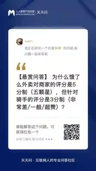 【天天问每周精选】第159期:为什么饿了么外卖对商家的评分是5分制(五颗星),但针对骑手的评分是3分制(非常差/一般/超赞)?