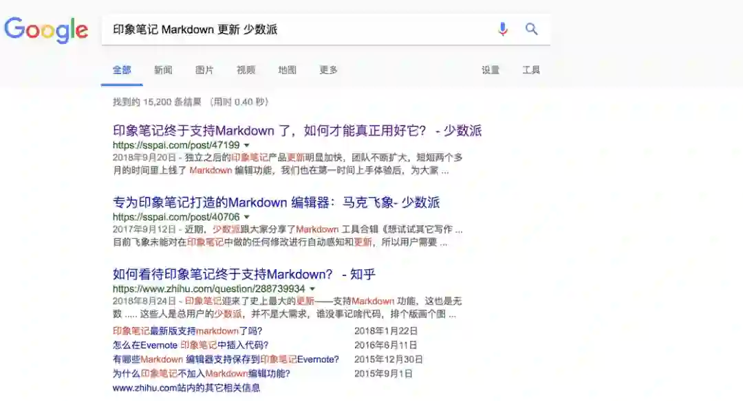 第二个技巧是关键词的选择,相对于找到正确的答案,更难的是问出一个正确的问题,提升搜索能力最核心的技巧就是准确提炼检索关键词。第一个技巧:使用关键词组合。这几乎成为一个检索的常识,我们从小就知道通过多个关键词的组合比「提问式检索」能得到更好的效果。不过随着自然语义理解(NLP)和分词技术日趋成熟,从检索结果来看,很多时候两者差距看起来并不大。举一个例子,比如最近印象笔记支持了 Markdown 编辑,我想要看看少数派有没有相关的文章。但是当我搜索:「少数派发布的关于印象笔记更新 Markdown 的内容」,也能得到类似的答案。那么为什么我们还是要用关键词组合的方式呢?主要原因在于检索效率,这也是搜索引擎的检索机制决定的,事实上你输入句子,Google 百度也还是会拆成词组进行检索,虽然引擎会屏蔽掉一些无意义的关键词,但还是会有很多关键词会干扰你最终的检索结果。与此同时,这种长句搜索无法灵活调整修改,完成复杂的检索任务。第二个技巧:更换同义词。比如我想了解「记忆宫殿」的相关知识,在搜索中发现原来很多书籍和影视作品还将其称为「思维宫殿」,通过对这个关键词的搜索,又多了 2,510,000 个结果。在专业领域这个技巧更加重要,因为很多时候官方文件中的表述和日常生活的表述完全不同,要想检索到有价值的信息,你需要积累最专业的表述。我举个法律行业的例子,来看看「法言法语」有多重要。比如想找找关于银行卡盗刷的裁判规则,一般人肯定就输入「银行卡」、「盗刷」,但是专业的法律从业者除此之外还会使用「伪卡」、「交易」这样的专业术语查询,自然更容易得到有价值的信息。第三个技巧:替换为英文表述。必须承认,在不少领域,互联网上英文撰写的内容,无论从质量还是数量都更胜一筹。因此,当你习惯用英文搜索,真是打开了一扇新世界的大门。如果英语不是很好,可以借助翻译工具,比如 Google 翻译、DeepL、彩云小译等等。随着 AI 技术的发展,翻译的效果也越来越好,有时候甚至让你看不出来这原本是一篇用英文写的内容。